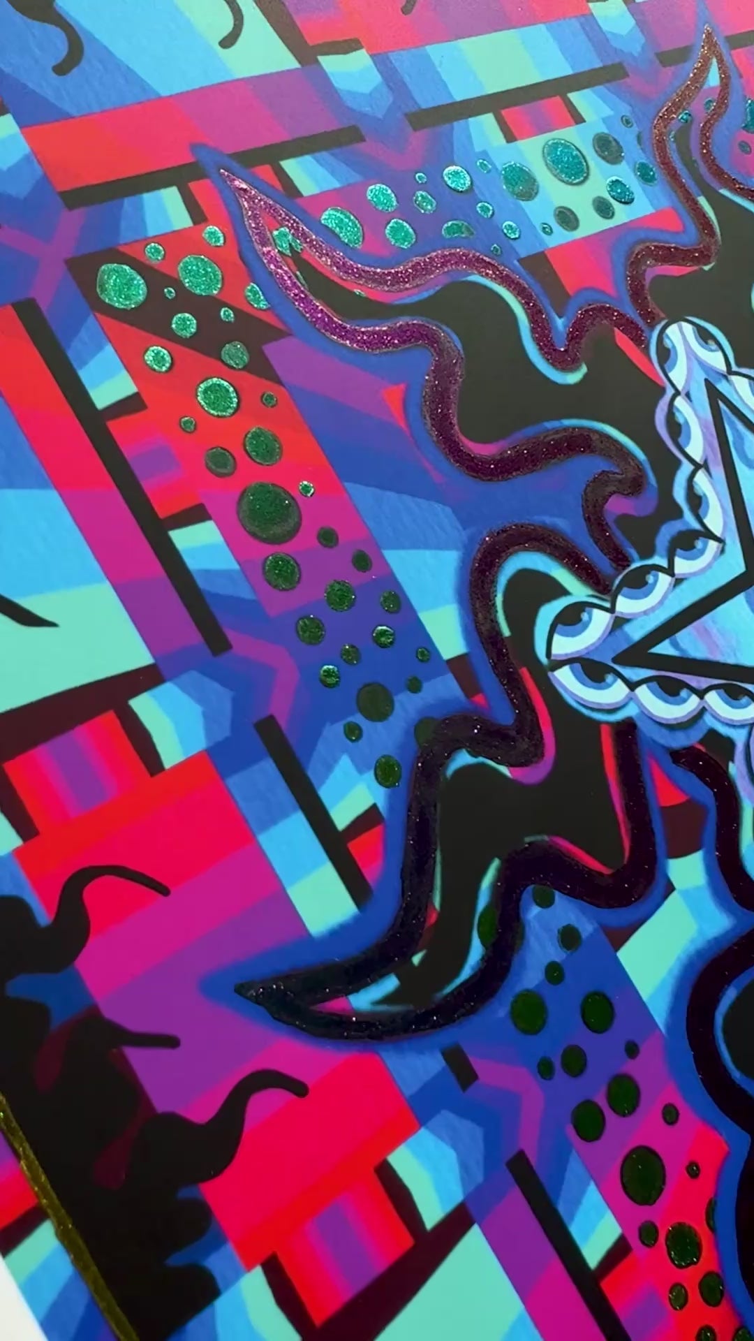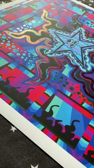 Matte finish, with a white border, high quality giclee print with hand painted shimmering, color shifting watercolor embellishments!! :)